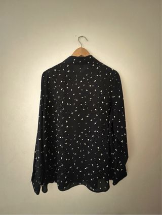 Camisa de manga larga con un diseño de lunares blancos sobre fondo negro. - Cuello camisero. - Tejido ligero con textura. - Cierre de botones oculto.