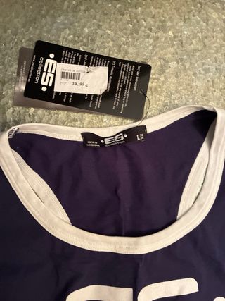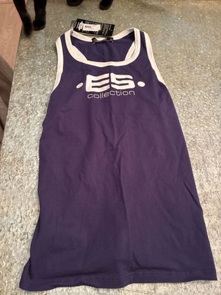 Camiseta sin mangas de la marca ES Collection, sin estrenar. - Diseño con ribete blanco en cuello y sisas. - Estampado frontal con el logo de la marca.