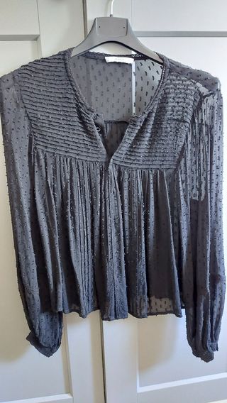 camisa de gasa en color negro, mangas transparentes. Talla S grande.