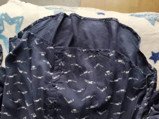 Camisa de manga larga en azul marino con estampado de dibujos variados en blanco, de corte suelto. Con bolsillo delantero, botones en las mangas y aperturas laterales en el bajo para mayor comodidad y libertad de movimiento. Talla S (Lefties), en muy buen estado. Viscosa, es ligera y fácil de cuidar, ya que no necesita plancha. Ideal para el otoño. 💙 Posible venta en persona en Ferrol o ENVÍO. 💙Envíos normalmente a la mañana siguiente de la compra. 💙Posibilidad de lotes y descuentos. ¡Mucho más en mi perfil!
