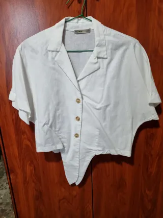 Camisa blanca de manga corta con botones. Para anudar en la cintura. Queda genial con los vaqueros. Envio mínimo dos prendas. - Diseño con cuello - Cierre de botones - Corte moderno