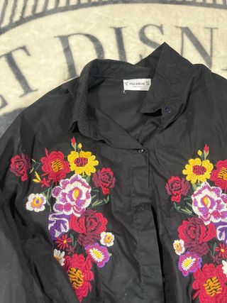 Camisa negra de Pull&Bear con un diseño floral bordado. - Mangas largas. - Cuello camisero. - Cierre de botones.