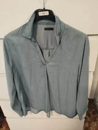 Camisa vaquera de manga larga con botones. - Dos bolsillos en el pecho. - Cuello camisero. - Cierre de botones metálicos.