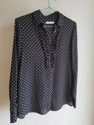 Camisa de manga larga con un estampado discreto y elegante. - Cuello camisero. - Cierre de botones. - Nudo frontal. En muy buen estado