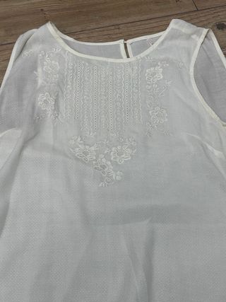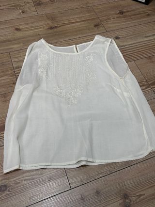 Camiseta sin mangas de color blanco con un delicado bordado floral en la parte delantera. Su diseño ligero la hace ideal para climas cálidos. - Bordado floral detallado. - Tejido ligero y transpirable. - Cierre de cremallera en la espalda.