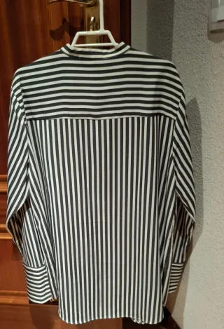 Camisa de manga larga con un diseño de rayas verticales en varios tonos de verde y blanco. Presenta un cuello clásico y cierre de botones. - Diseño a rayas. - Cuello camisero. - Cierre de botones. - Se adapta muy bien por ser elástica, se encuentra en perfecto estado. Negociable