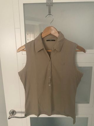 Polo sin mangas de color marrón claro. - Cuello camisero. - Cierre de botones. - Logo bordado en el pecho.