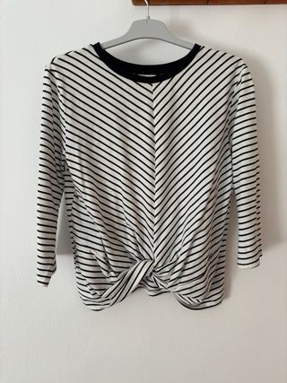 Camisa de rayas clásica con cuello redondo. - Diseño de rayas horizontales. - Manga larga. - Cuello con ribete negro.