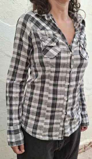 Camisa vaquera de manga larga. - Cierre de botones. - Dos bolsillos en el pecho. - Puños abotonados. - Pone talla 46 pero es mas pequeña.