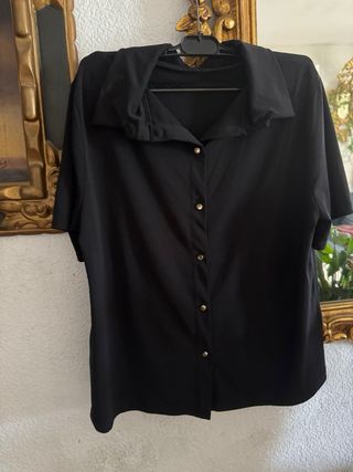 Camisa elegante con detalles satinados. Su tejido semitransparente le da un toque sofisticado. - Diseño semitransparente. - Detalles satinados. - Nueva.