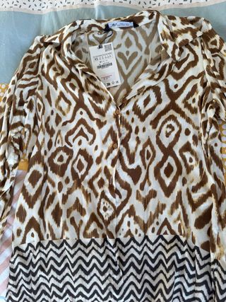 Camisa Zara Estampada Beige y Marrón Talla XS