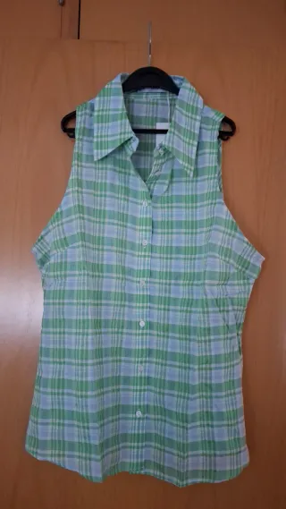 Camisa de cuadros con un diseño fresco y veraniego. - Patrón de cuadros en tonos verdes y azules. - Diseño sin mangas. - Cuello camisero. - Cierre de botones. Se entrega también en Granada capital