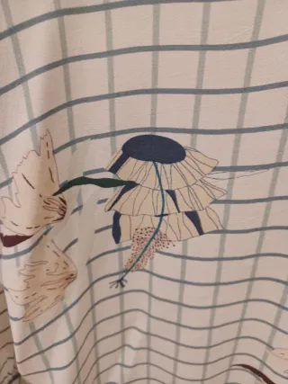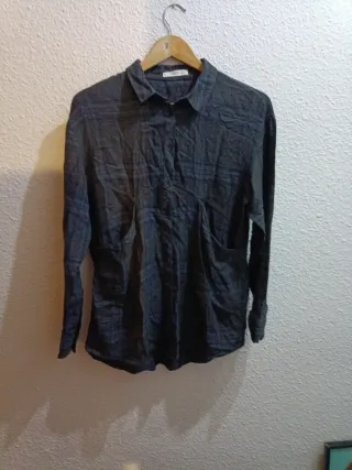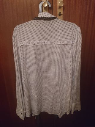 Camisa 100% viscosa de manga larga con un estampado discreto. - Cuello camisero. - Cierre de botones. - Puños abotonados. Ojo, Falta un botón en una de las mangas y un descosido en la zona de la etiqueta.