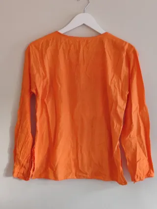 Camisa de manga larga en color naranja, con un diseño bordado y detalles de lentejuelas. - Manga larga. - Cuello en V. - Adornos de lentejuelas. - Tejido ligero.