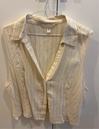 Camisa sin mangas con un diseño de rayas verticales. - Cuello camisero. - Cierre de botones. - Tejido ligero.