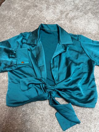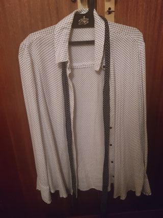 Camisa elegante de manga larga. - Cierre frontal con dos botones dorados. - Ribete plateado en el cuello Entrego en mano en la zona