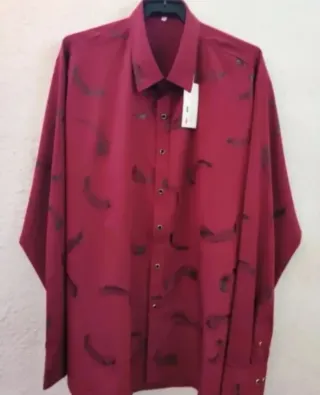Camisa de manga larga con un diseño llamativo. - Color Burdeos. - Nueva. - Estampado de plátanos en tono oscuro. - Cuello clásico. - Cierre de botones.