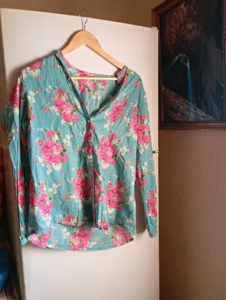 Camisa con estampado floral en tonos azules y rosas. Presenta un diseño con cuello en V y manga larga. - Estampado floral. - Cuello en V. - Manga larga.