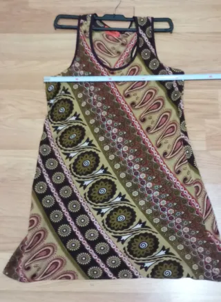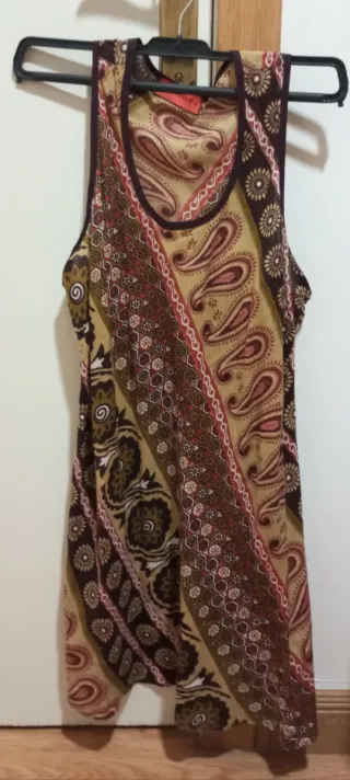 Camisa fina sin mangas estampada. Se puede utilizar como vestido corto. Yo me la he puesto con un cinto