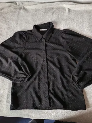 Camisa negra de Lefties con un diseño texturizado, con topitos - Manga un poco fruncida por el hombro - Cierre de botones. - Tengo más camisas en mi perfil