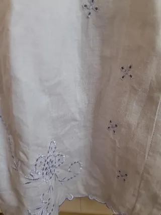 Camisa de manga larga con detalles bordados y cordones en el escote. - Cuello con volante. - Mangas abullonadas con puños elásticos. - Bordados florales en las mangas y el escote. - Cierre de cordones con borlas. Se puso 1 vez, y se cortó la etiqueta de dentro.