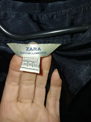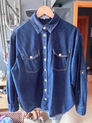 Camisa tejana de mujer de la marca Zara. - Diseño clásico con botones. - Dos bolsillos en la parte delantera. - Costuras a contraste.
