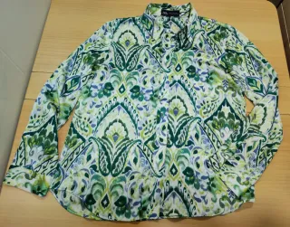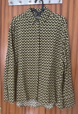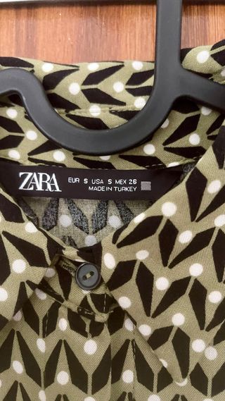 Camisa fina mujer, con estampado, marca ZARA, talla XS. Se transparenta un poco. Medidas: - 50 cm de axilas. - 40 cm de hombros. - 64 cm de largo. - 57 cm mangas. En buen estado.