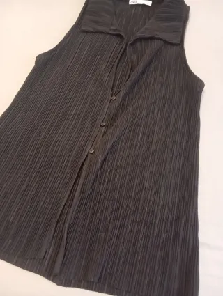 Camisa de Zara sin mangas, con un diseño plisado y cierre de botones. - Tejido texturizado. - Cuello camisero. - Botones frontales.