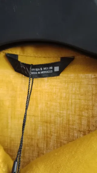 Camisa de vestir de la marca Zara, con un diseño vibrante y moderno. - Tejido tipo tweed con hilos de colores. - Corte entallado. - Manga corta. - Acabado deshilachado en cuello y mangas.