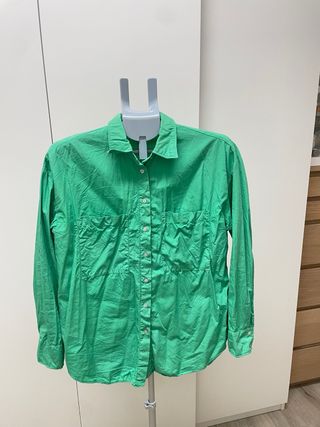 Camisa de Zara con un diseño elegante y moderno. - Color verde vibrante. - Detalle en negro.