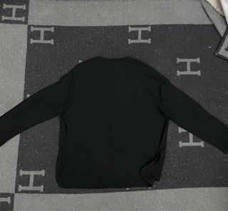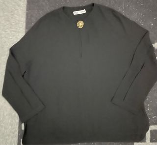 Elegante camisa negra de ZARA con un detalle de broche dorado en la parte delantera. - Diseño de cuello redondo. - Manga larga. - Corte holgado.