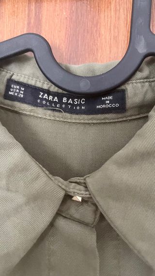 Camisa de estilo militar de Zara. Presenta un diseño con hombreras y bolsillos. - Hombreras con tachuelas. - Dos bolsillos en la parte delantera. - Cierre de botones.