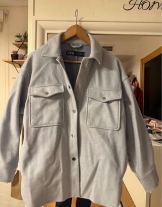 Sobrecamisa de cuadros de Zara. - Diseño de cuadros en tonos beige y gris. - Cuello camisero. - Cierre de botones. - Dos bolsillos en el pecho.