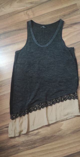 Jersey de zara combinado en punto y tejido de camisa, efecto doble capa. Es la talla 13-14 de niña, válida para una S de mujer.