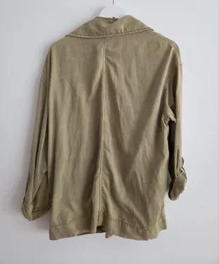 Sobrecamisa Zara verde oliva delavada.