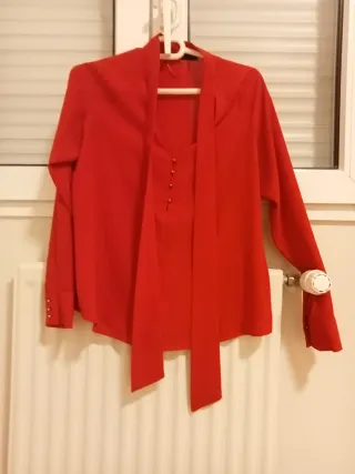 Elegante camisa roja de Zara con detalles de lazada. Talla S Tela fluida