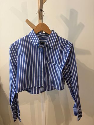 Camisa corta de rayas de Zara. - Diseño crop top. - Cuello camisero. - Manga larga con puños.
