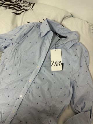 Elegante camisa de Zara confeccionada en raso. - Diseño de manga larga. - Cierre de botones. - Cuello camisero. Da para talla M