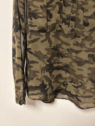 Tejido muy suave y ligero de viscosa.Botones y detalles de tachas metálicas Súper cómoda. Corte Relax amplia. Usada muy poco.Talla M 📏Medidas reales (comprobar antes de comprar): ❌ No acepto devoluciones por no revisar las medidas.Cualquier duda preguntar. Ancho hombro 44cm - ancho sisa a sisa 50 - largo 70cm- manga 67cm
