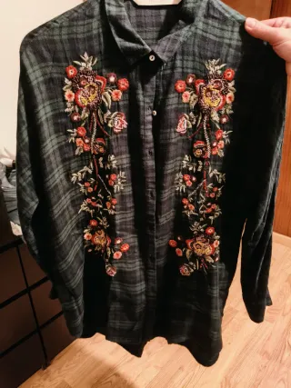 Camisa de Zara con un diseño de cuadros y detalles bordados de flores. - Diseño de cuadros - Bordados florales - Cuello camisero - Cierre de botones