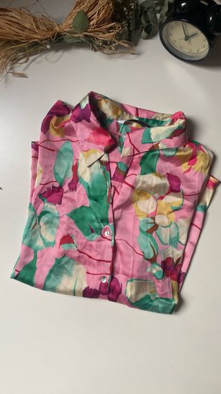 Camisa de Zara con un diseño tie-dye vibrante y moderno. Su tejido ligero la hace perfecta para cualquier ocasión. En muy buen estado. - Estampado tie-dye - Cuello camisero - Cierre de botones