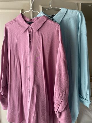 Camisa rosa empolvado o turquesa de corte amplio y moderno. - Cuello camisero. - Cierre de botones. - Puños abotonados. se venden por unidad, ambas están sin estrenar aunque solo conserva etiqueta la azul. si estás interesado en las dos unidades, indícamelo en la compra y modifico el precio (22€)