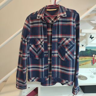 Camisa de cuadros de Zara para mujer. - Diseño de cuadros en tonos rojos, blancos y azules. - Dos bolsillos en la parte delantera. - Cuello camisero. - Cierre de botones. Talla L ,de hombro a hombro 41 cm , largo 64 cm