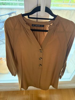 Camisa de Zara, talla S, en color marrón. Nueva a estrenar. - Diseño moderno y versátil. - Tejido de alta calidad. Nueva con su etiqueta
