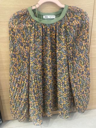 Camisa de Zara con un bonito estampado floral. - Diseño con cuello elástico. - Mangas cortas. - Tejido ligero y plisado.