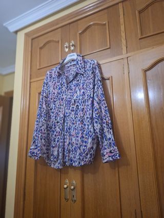 Preciosa camisa larga de Zara, ideal para cualquier ocasión. - Elegante estampado azul y blanco. - Diseño ligero y fluido. - Perfecta para primavera/verano.