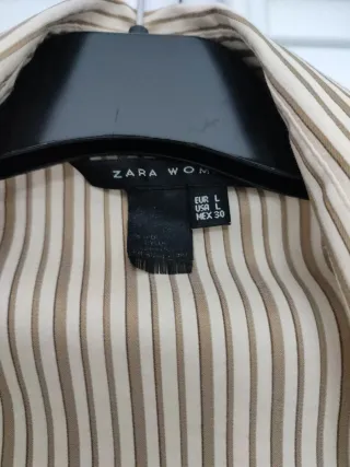 Camisa tipo blazer de Zara en color beige. Diseño moderno y versátil. - Cierre de cremallera. - Cinturón ajustable. - Bolsillos frontales.