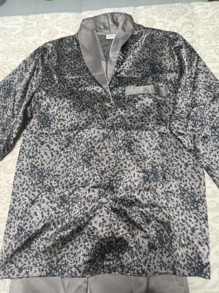 Conjunto de pijama de satén con un llamativo estampado. - Camisa de manga larga con botones. - Pantalón largo. - Acabado satinado. -Talla Única -Sin Estrenar