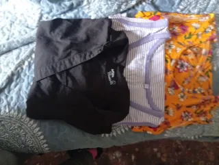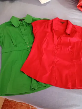 Conjunto de 2 camisas de manga corta. Son de tejido elástico pero muy entalladas al cuerpo. Pongo medidas aproximadamente.