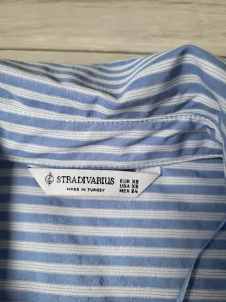 Camisa larga de Bershka con un acabado satinado. Cuello camisero, manga larga. Tiene trabillas por si se quiere poner con un cinturón. Talla/ XS